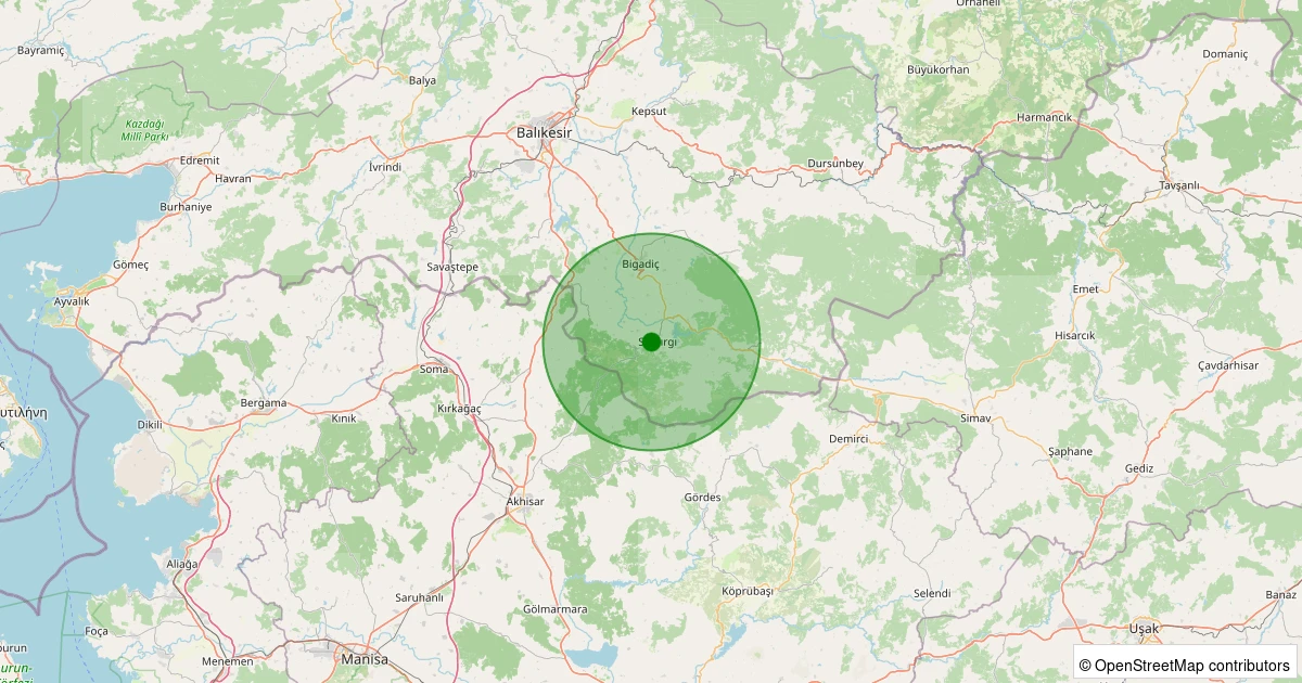 Son 7 gün içinde Sındırgı noktasından 100 km yarıçap içerisinde meydana gelen diğer depremler: