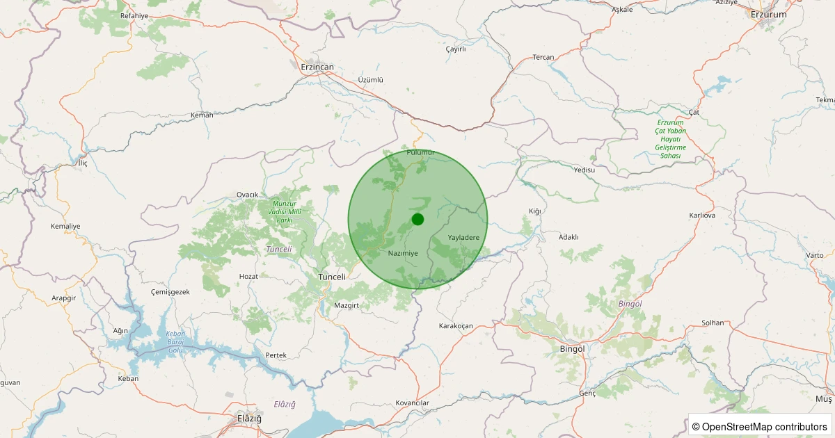 Son 7 gün içinde Nazımiye - Dereova Köyü noktasından 100 km yarıçap içerisinde meydana gelen diğer depremler: