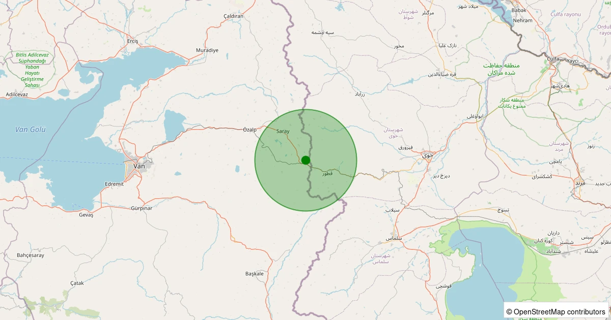 Son bir hafta içerisinde Van şehri Saray - Çaybağı noktasından 100 km yarıçap içerisinde toplamda 25 deprem kaydedilmiştir. Bu depremlerden en büyüğü 3.4 büyüklüğünde ve en sığ odaklısı 5.00 kilometre derinlikte gerçekleşmiştir.