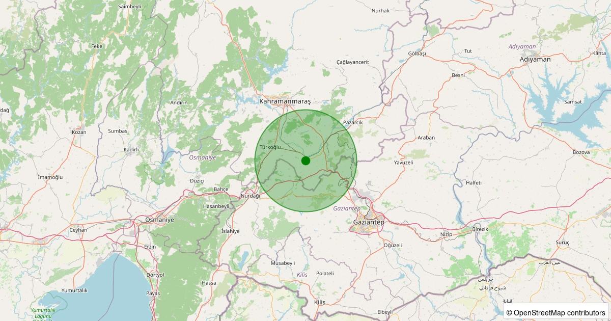 Son 7 gün içinde Kahramanmaraş noktasından 100 km yarıçap içerisinde meydana gelen diğer depremler: