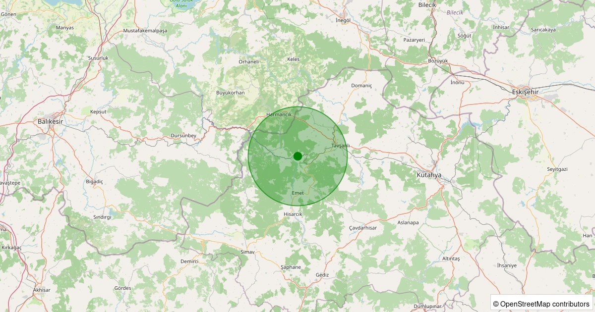 Son 7 gün içinde Tavşanlı - Kışlademirli Köyü noktasından 100 km yarıçap içerisinde meydana gelen diğer depremler: