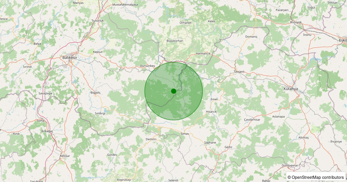 Son 7 gün içinde Dursunbey - Reşadiye noktasından 100 km yarıçap içerisinde meydana gelen diğer depremler: