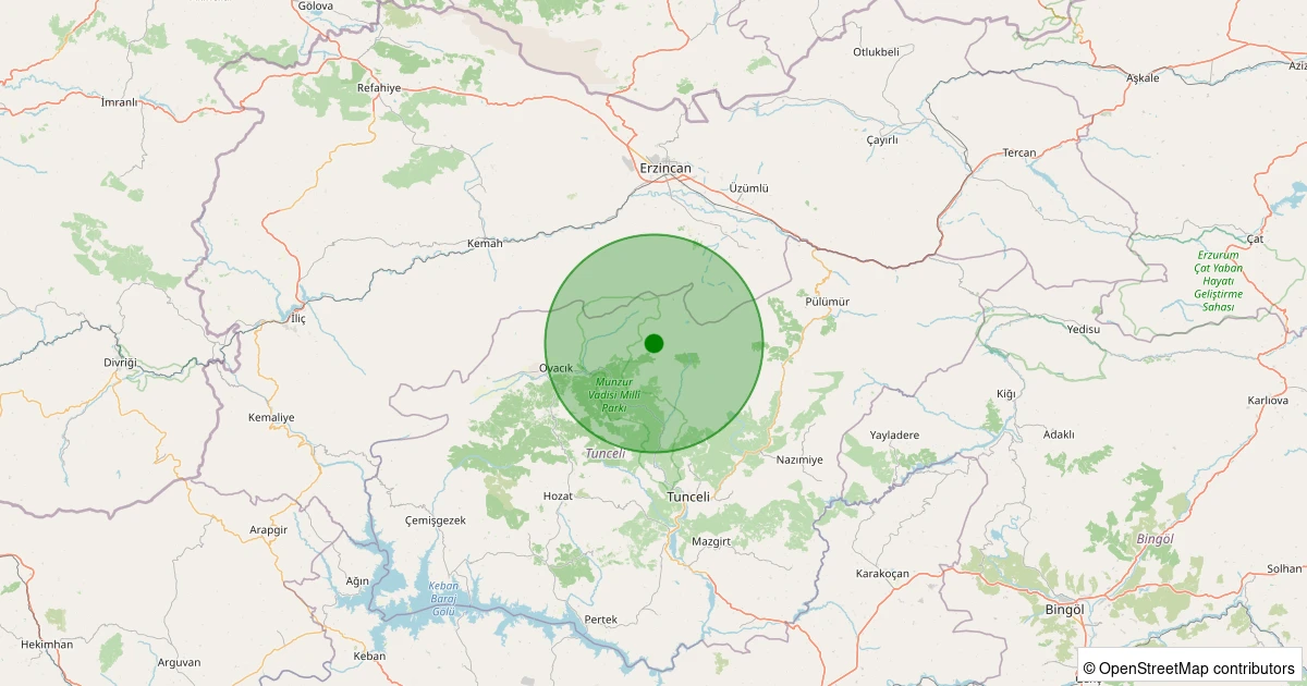 Son 7 gün içinde Ovacık - Işıkvuran Köyü noktasından 100 km yarıçap içerisinde meydana gelen diğer depremler: