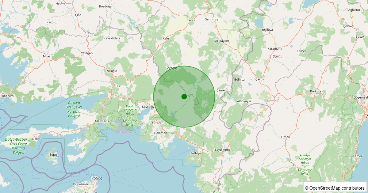 Son 7 gün içinde Köyceğiz - Otmanlar noktasından 100 km yarıçap içerisinde meydana gelen diğer depremler:
