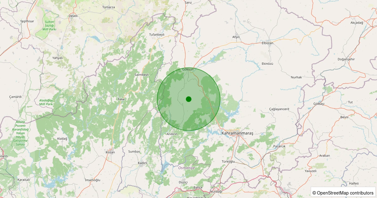 Son 7 gün içinde Onikişubat - Kumarlı noktasından 100 km yarıçap içerisinde meydana gelen diğer depremler: