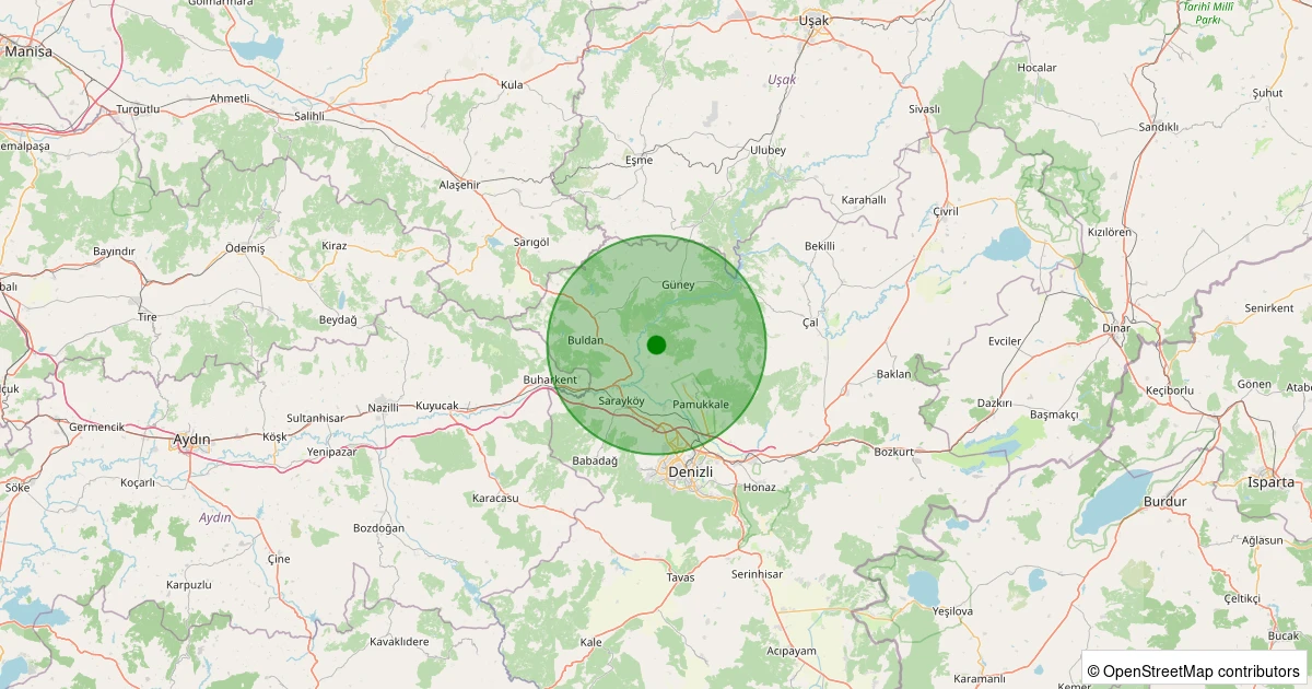 Son 7 gün içinde Pamukkale - Belenardıç Köyü noktasından 100 km yarıçap içerisinde meydana gelen diğer depremler: