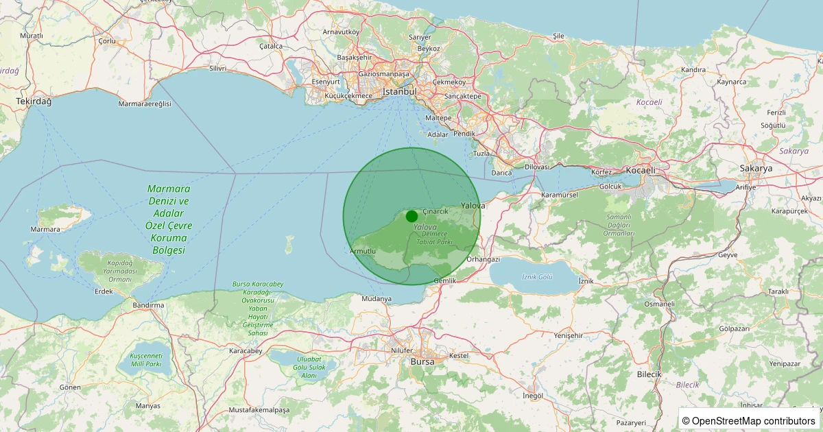 Son 7 gün içinde Çınarcık - Kocadere Köyü noktasından 100 km yarıçap içerisinde meydana gelen diğer depremler: