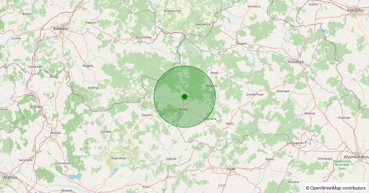 Son 7 gün içinde Simav - Naşa/Fatih noktasından 100 km yarıçap içerisinde meydana gelen diğer depremler: