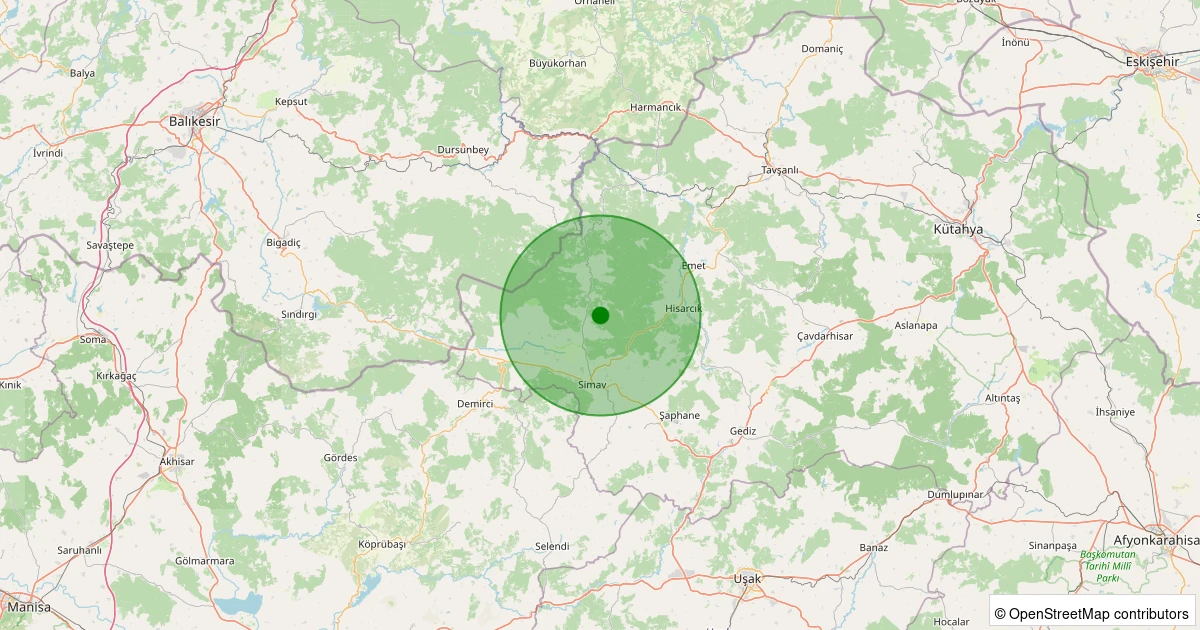 Son 7 gün içinde Simav - Yemişli Köyü noktasından 100 km yarıçap içerisinde meydana gelen diğer depremler: