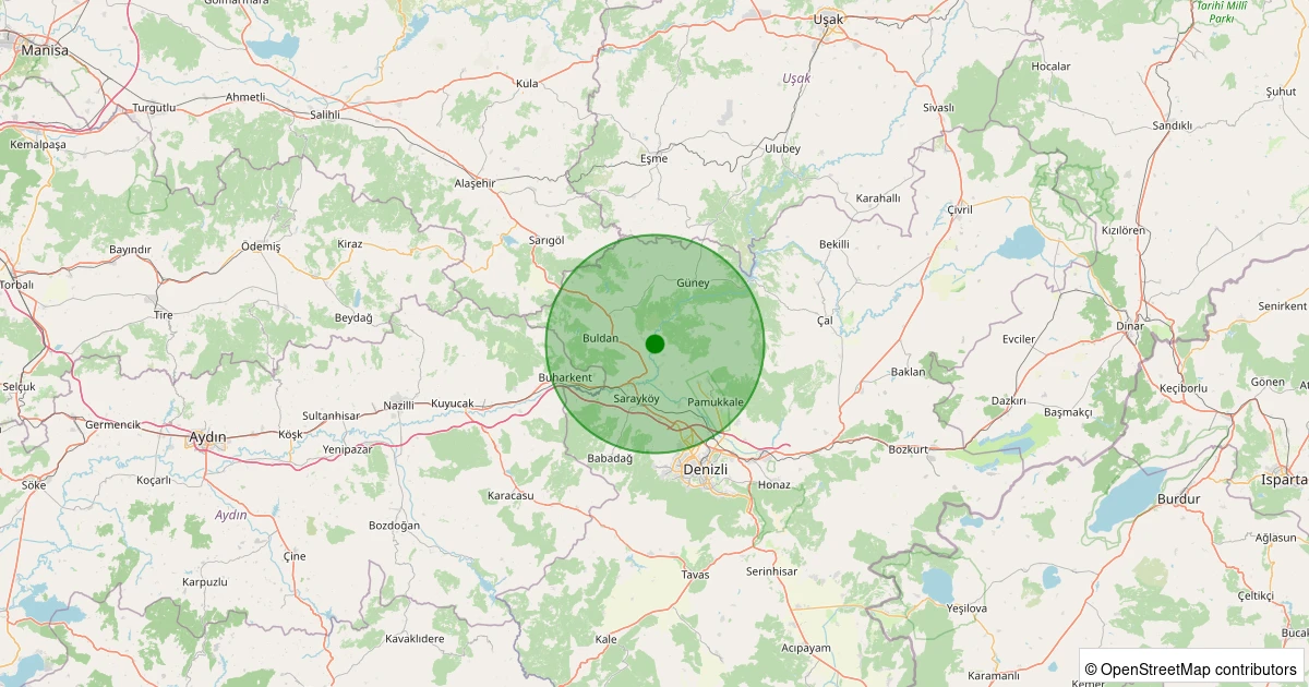 Son 7 gün içinde Buldan - Yenicekent noktasından 100 km yarıçap içerisinde meydana gelen diğer depremler: