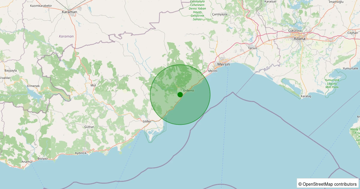 Son 7 gün içinde Erdemli - Üçtepe noktasından 100 km yarıçap içerisinde meydana gelen diğer depremler: