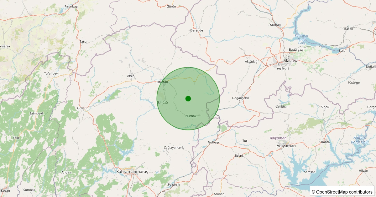 Son 7 gün içinde Elbistan - Bakış-Soğucak Köyü noktasından 100 km yarıçap içerisinde meydana gelen diğer depremler: