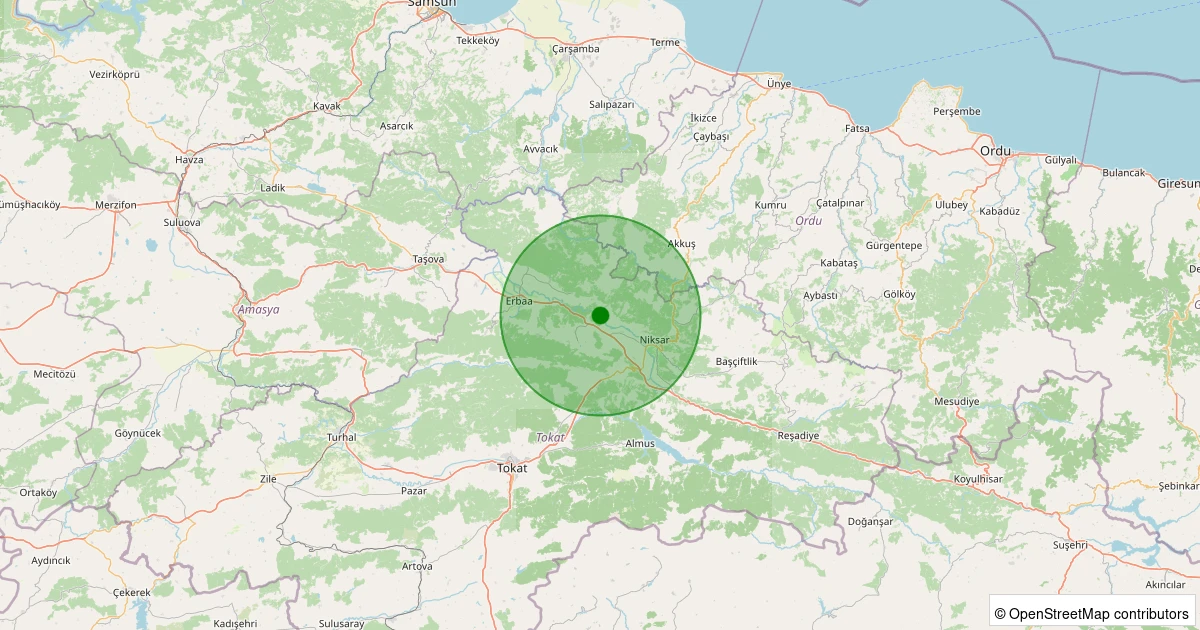 Son 7 gün içinde Erbaa - Pınarbeyli Köyü noktasından 100 km yarıçap içerisinde meydana gelen diğer depremler: