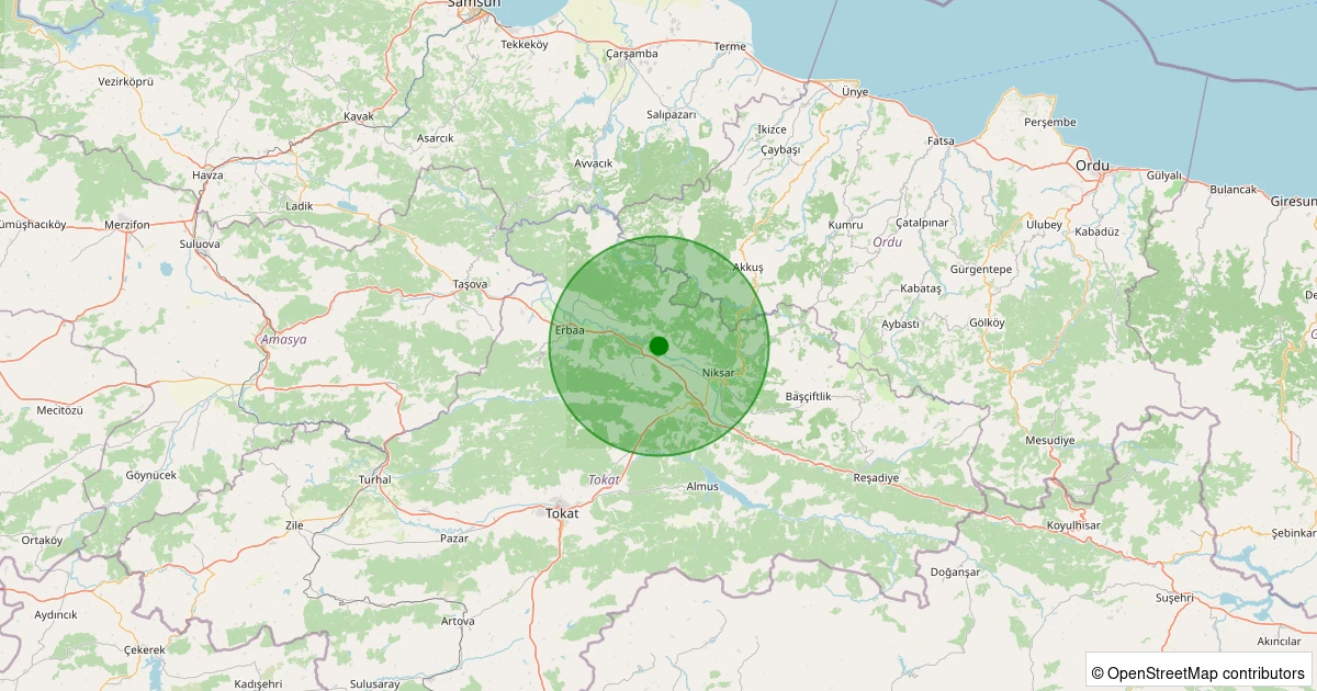 Son 7 gün içinde Erbaa - Pınarbeyli Köyü noktasından 100 km yarıçap içerisinde meydana gelen diğer depremler: