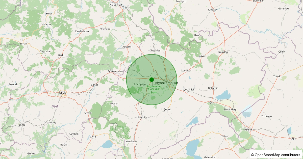 Son 7 gün içinde Sinanpaşa - Akören/Bağdat noktasından 100 km yarıçap içerisinde meydana gelen diğer depremler: