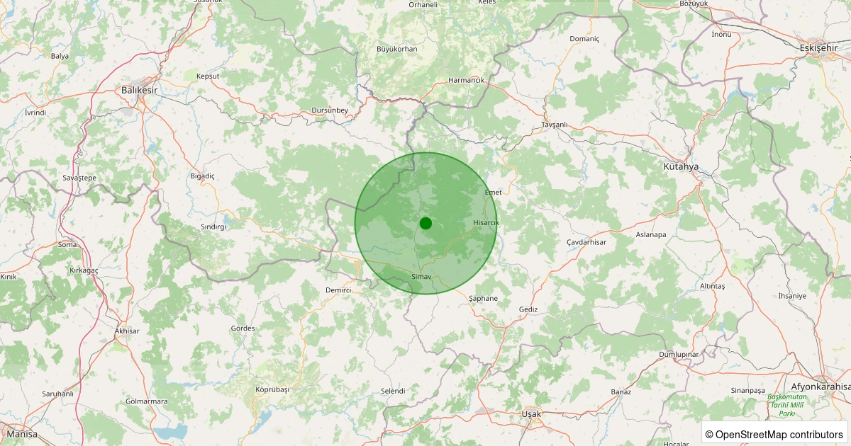 Son 7 gün içinde Simav - Maden Köyü noktasından 100 km yarıçap içerisinde meydana gelen diğer depremler: