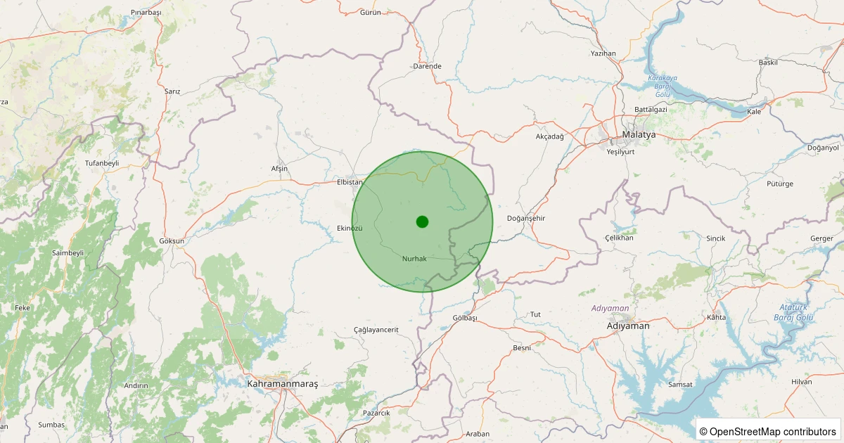 Son 7 gün içinde Elbistan - Bakış-Soğucak Köyü noktasından 100 km yarıçap içerisinde meydana gelen diğer depremler: