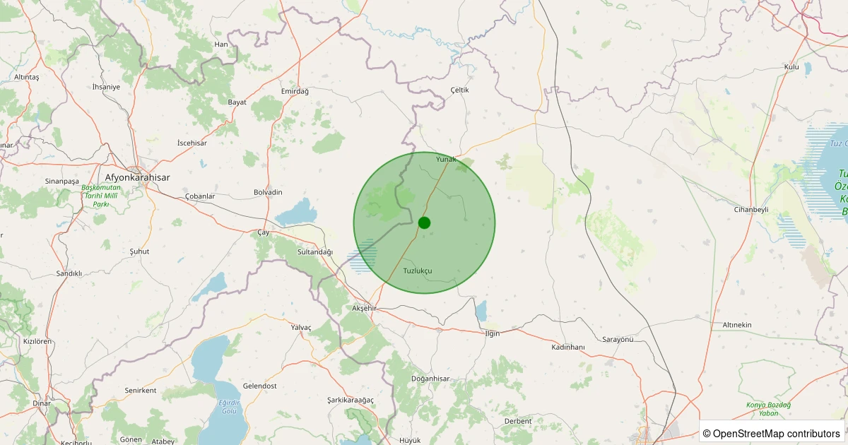 Son 7 gün içinde Tuzlukçu - Koraşı noktasından 100 km yarıçap içerisinde meydana gelen diğer depremler:
