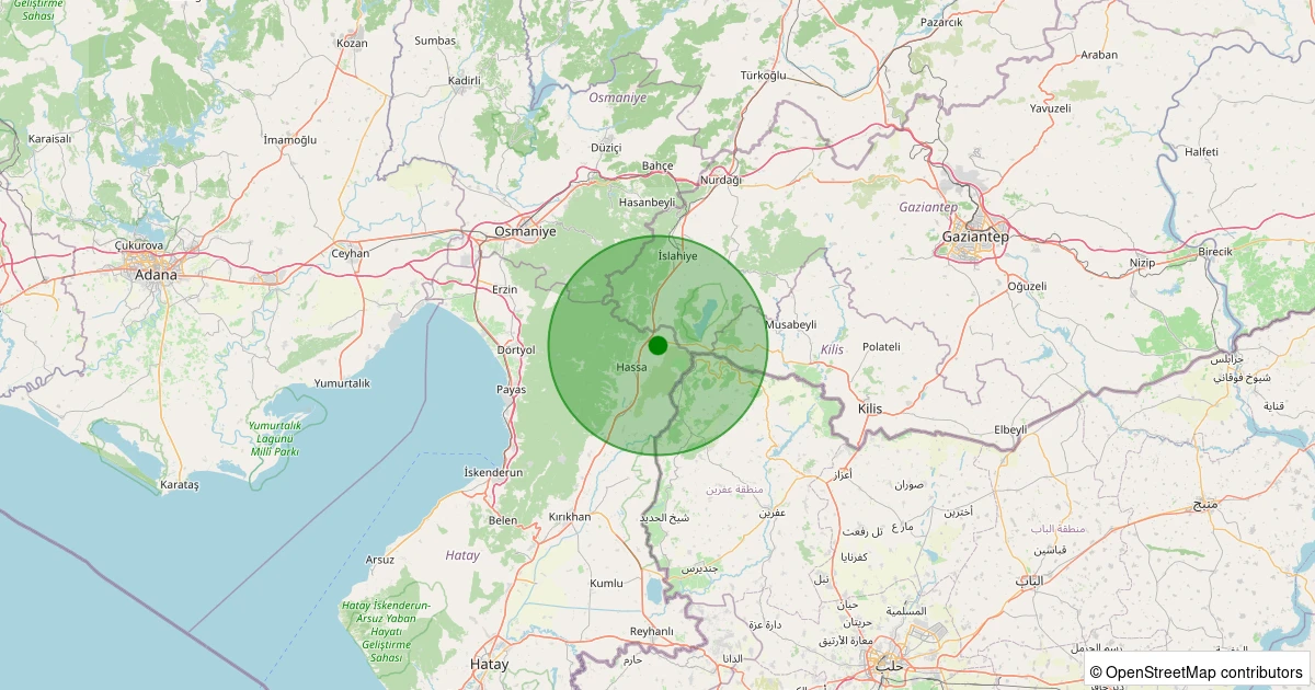 Son 7 gün içinde Hassa - Sapanözü Köyü noktasından 100 km yarıçap içerisinde meydana gelen diğer depremler: