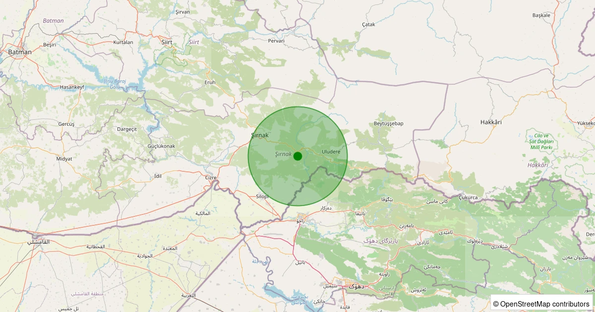 Son 7 gün içinde Uludere - Şenoba Beld.Başkaya noktasından 100 km yarıçap içerisinde meydana gelen diğer depremler: