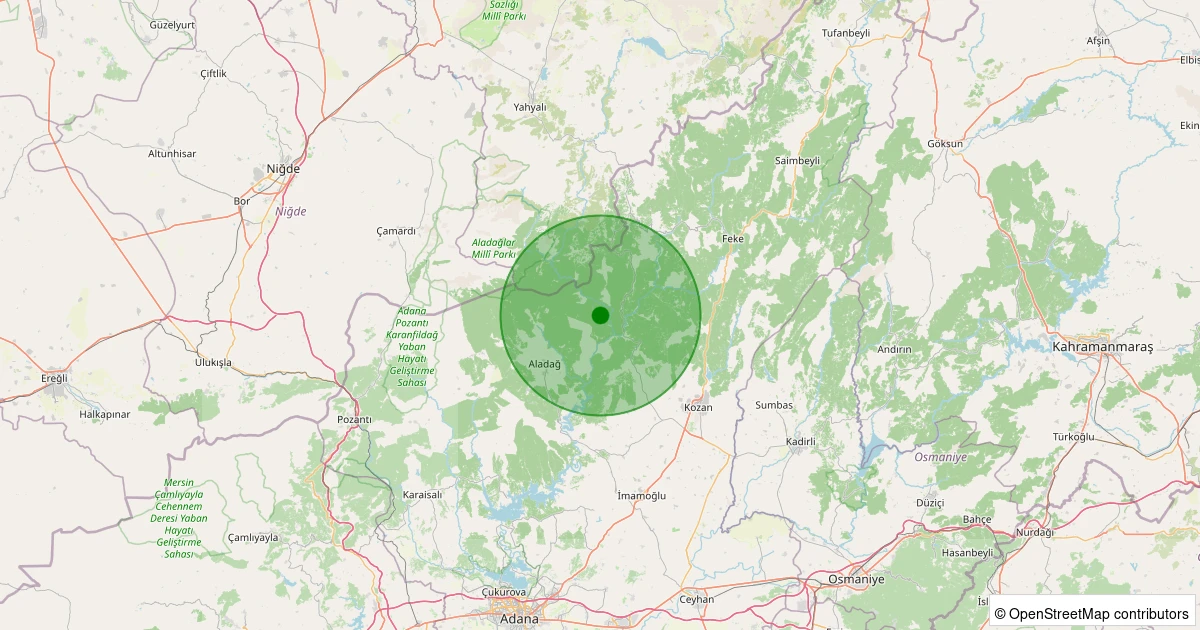 Son bir hafta içerisinde Adana şehri Aladağ - Köprücük noktasından 100 km yarıçap içerisinde toplamda 149 deprem kaydedilmiştir. Bu depremlerden en büyüğü 3.3 büyüklüğünde ve en sığ odaklısı 3.00 kilometre derinlikte gerçekleşmiştir.