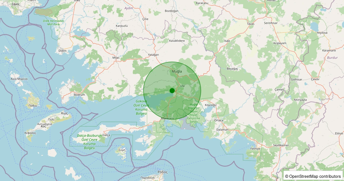 Son 7 gün içinde Menteşe - Kuyucak noktasından 100 km yarıçap içerisinde meydana gelen diğer depremler: