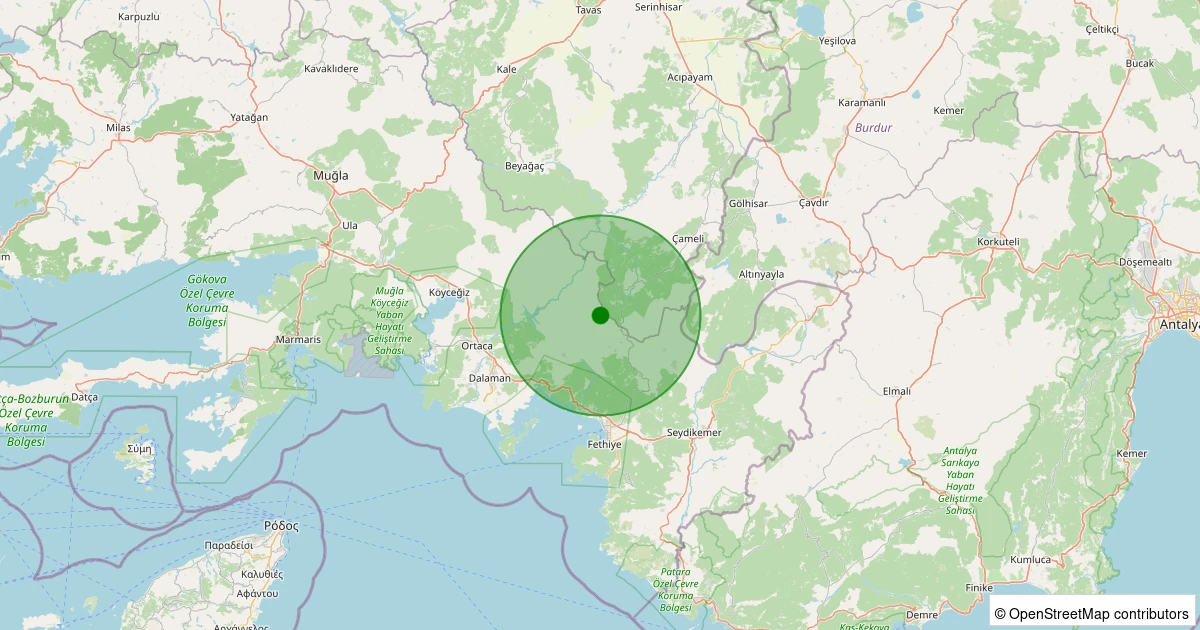Son 7 gün içinde Dalaman - Taşbaşı noktasından 100 km yarıçap içerisinde meydana gelen diğer depremler: