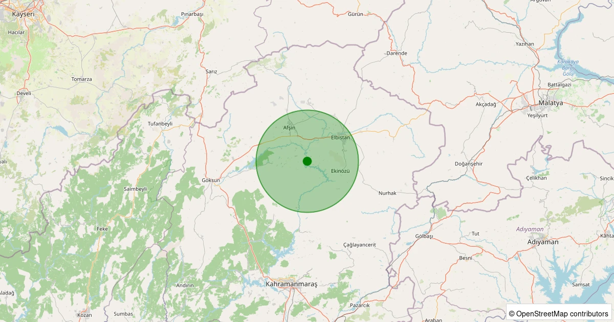 Son 7 gün içinde Elbistan - Dağdere Köyü noktasından 100 km yarıçap içerisinde meydana gelen diğer depremler: