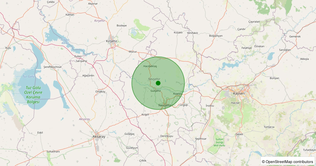 Son 7 gün içinde Gülşehir - Alkan Köyü noktasından 100 km yarıçap içerisinde meydana gelen diğer depremler: