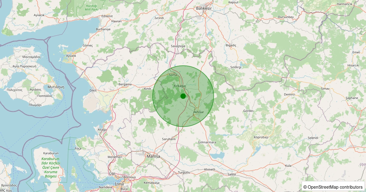 Son 7 gün içinde Akhisar - Yatağan Köyü noktasından 100 km yarıçap içerisinde meydana gelen diğer depremler: