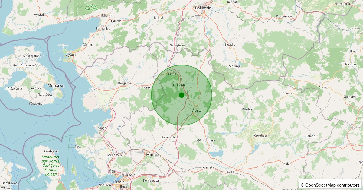 Son 7 gün içinde Akhisar - Yatağan Köyü noktasından 100 km yarıçap içerisinde meydana gelen diğer depremler: