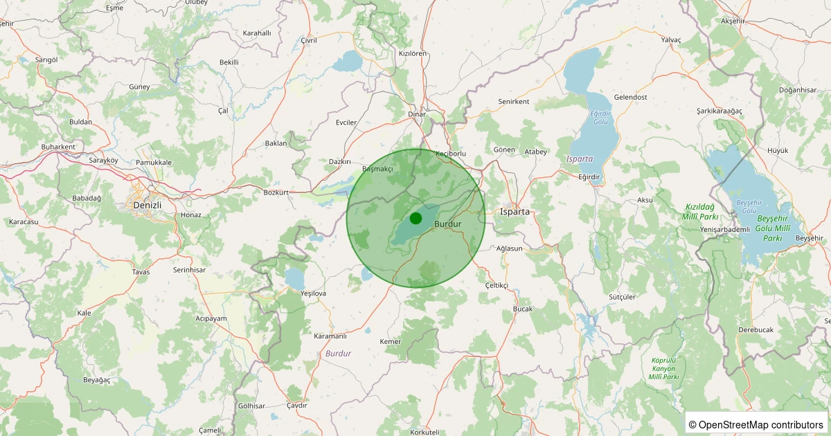 Son bir hafta içerisinde Burdur şehri Merkez noktasından 100 km yarıçap içerisinde toplamda 24 deprem kaydedilmiştir. Bu depremlerden en büyüğü 1.8 büyüklüğünde ve en sığ odaklısı 5.00 kilometre derinlikte gerçekleşmiştir.