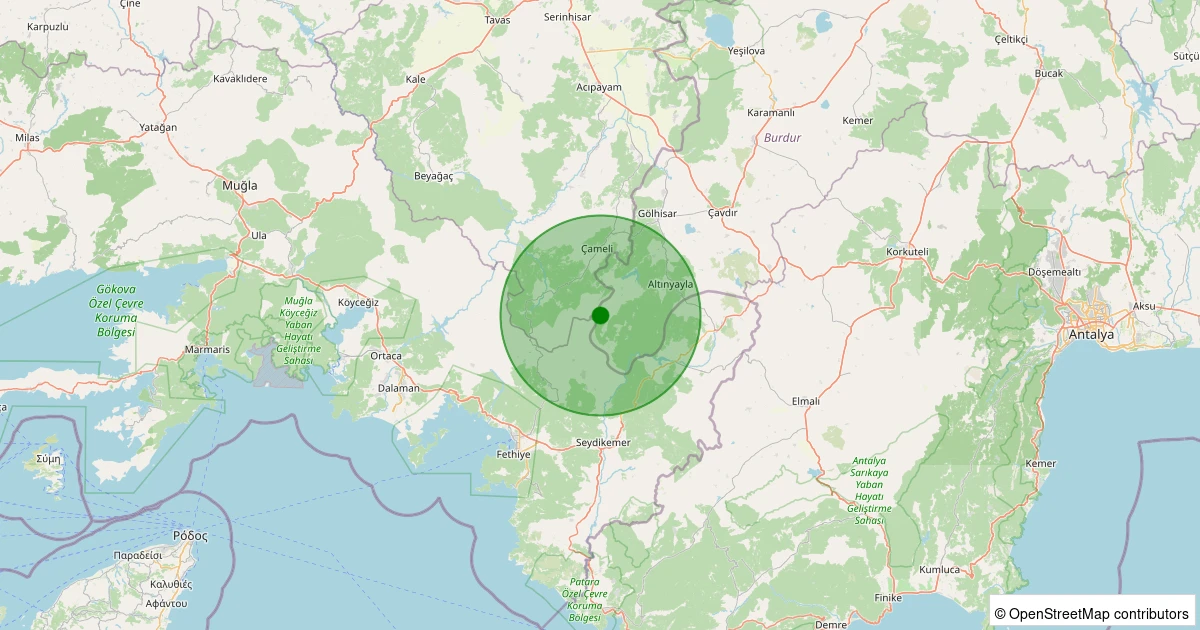 Son 7 gün içinde Gölhisar - Elmalıyurt Köyü noktasından 100 km yarıçap içerisinde meydana gelen diğer depremler:
