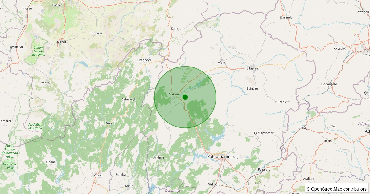 Son 7 gün içinde Göksun noktasından 100 km yarıçap içerisinde meydana gelen diğer depremler: