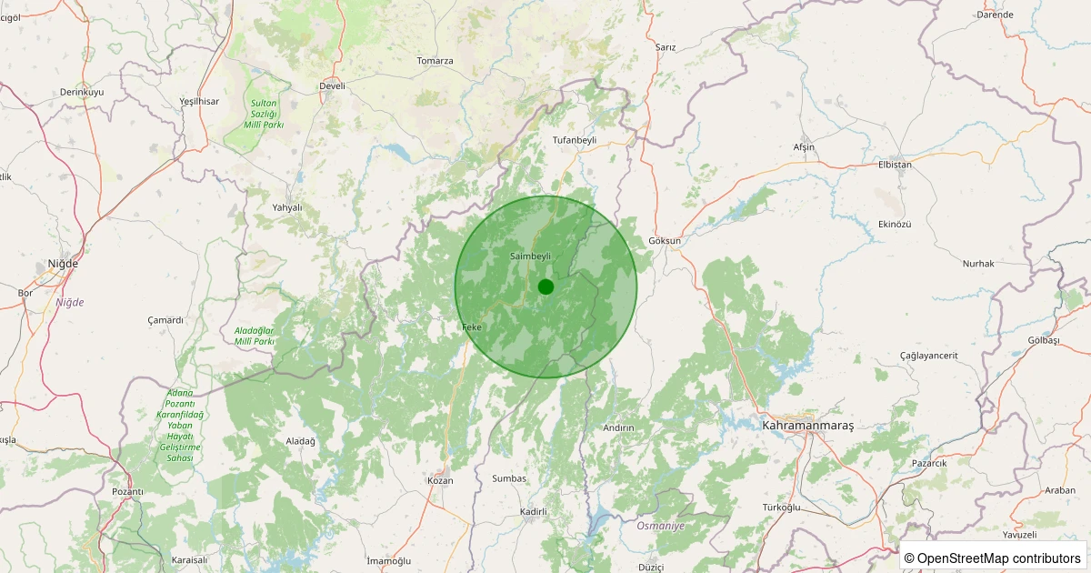Son 7 gün içinde Saimbeyli - Gürleşen noktasından 100 km yarıçap içerisinde meydana gelen diğer depremler: