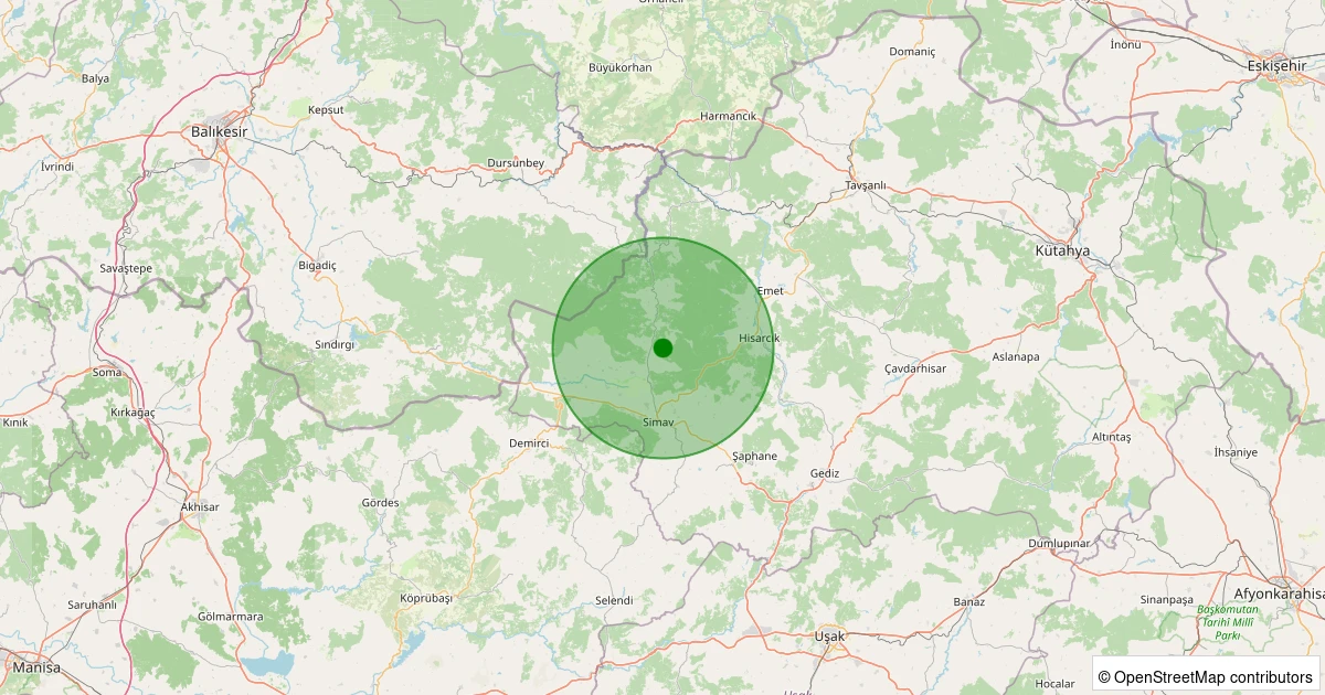 Son 7 gün içinde Simav - Yemişli Köyü noktasından 100 km yarıçap içerisinde meydana gelen diğer depremler: