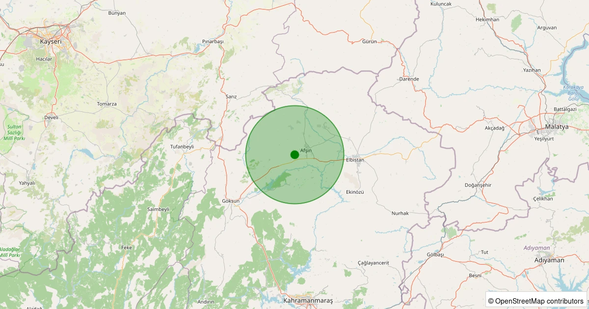 Son 7 gün içinde Afşin - Başüstü noktasından 100 km yarıçap içerisinde meydana gelen diğer depremler:
