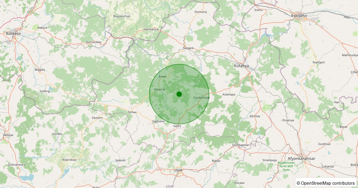 Son 7 gün içinde Emet - Düşecek Köyü noktasından 100 km yarıçap içerisinde meydana gelen diğer depremler: