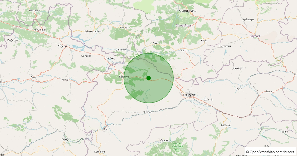 Son 7 gün içinde Refahiye - Yeniköy Köyü noktasından 100 km yarıçap içerisinde meydana gelen diğer depremler: