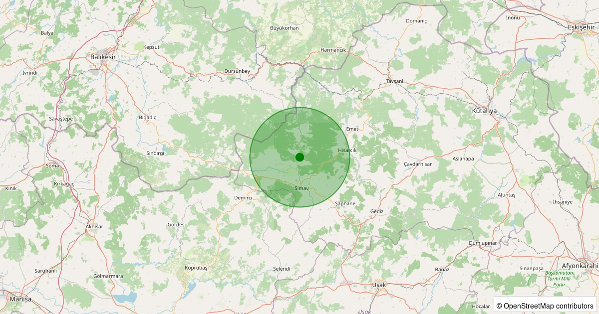 Son 7 gün içinde Simav - Yemişli Köyü noktasından 100 km yarıçap içerisinde meydana gelen diğer depremler: