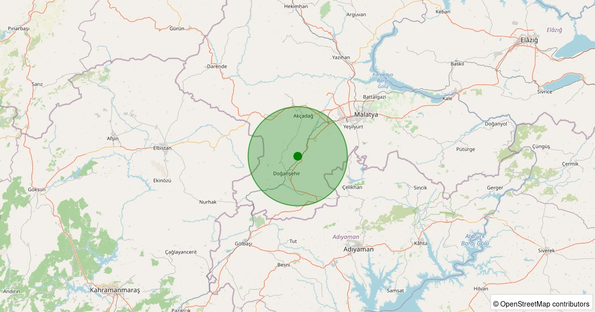 Son 7 gün içinde Doğanşehir - Polatdere noktasından 100 km yarıçap içerisinde meydana gelen diğer depremler: