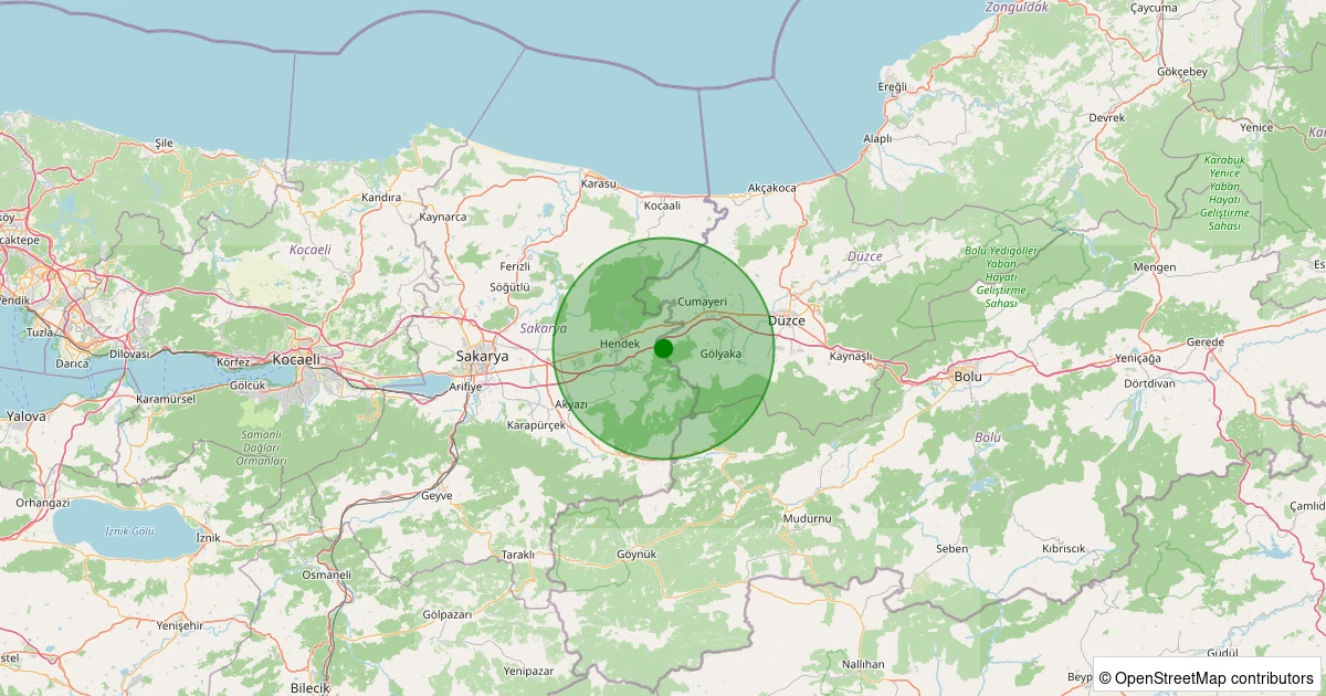 Son 7 gün içinde Gümüşova - Yeşilyayla Köyü noktasından 100 km yarıçap içerisinde meydana gelen diğer depremler: