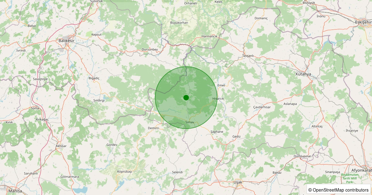 Son 7 gün içinde Simav - Karakoca Köyü noktasından 100 km yarıçap içerisinde meydana gelen diğer depremler: