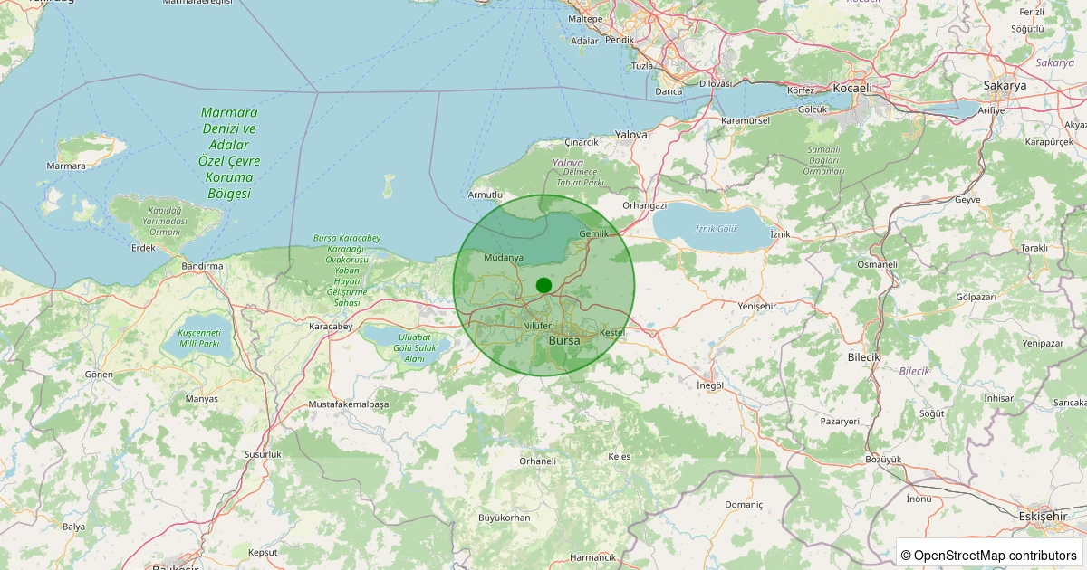 Son 7 gün içinde Osmangazi - Ahmetbey Köyü noktasından 100 km yarıçap içerisinde meydana gelen diğer depremler: