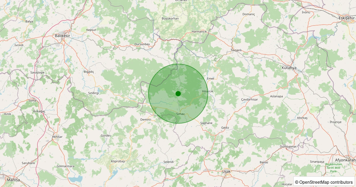 Son 7 gün içinde Simav - Yemişli Köyü noktasından 100 km yarıçap içerisinde meydana gelen diğer depremler: