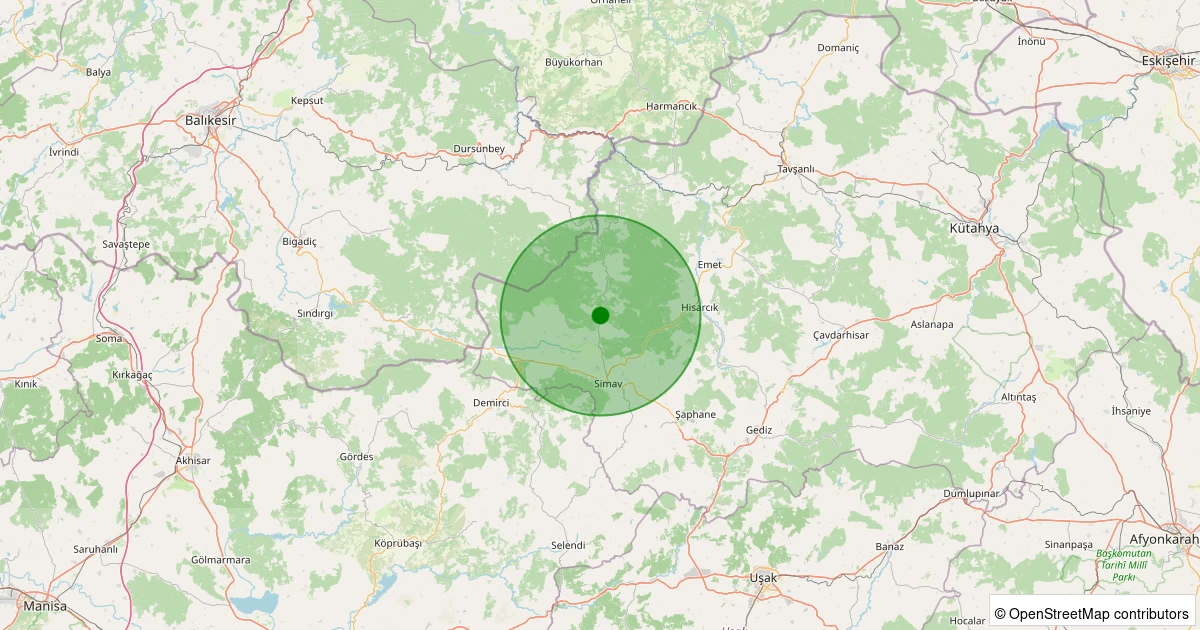 Son 7 gün içinde Simav - Yemişli Köyü noktasından 100 km yarıçap içerisinde meydana gelen diğer depremler:
