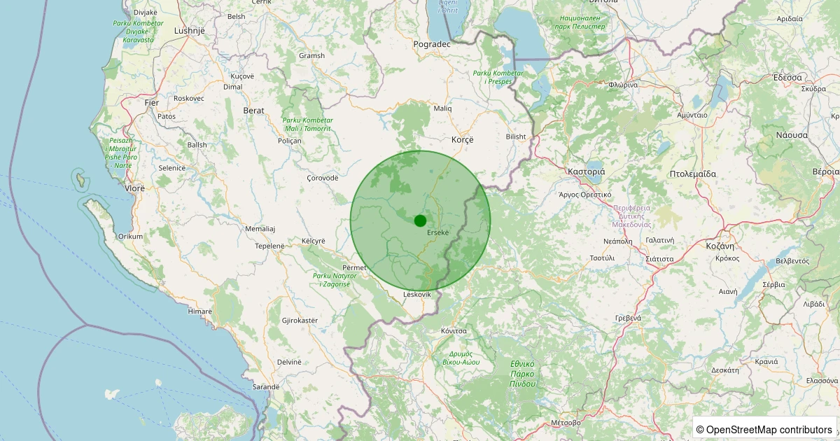 Son 7 gün içinde Qendër Ersekë, Korçë (Arnavutluk) noktasından 100 km yarıçap içerisinde meydana gelen diğer depremler:
