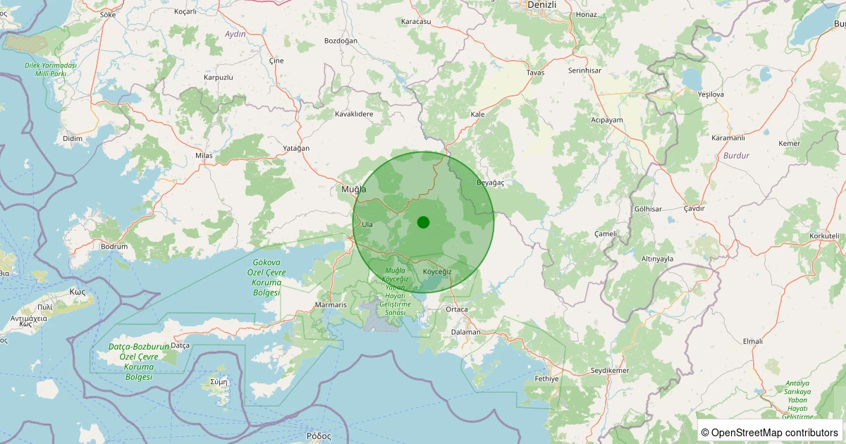 Son 7 gün içinde Ula - Kavakçalı noktasından 100 km yarıçap içerisinde meydana gelen diğer depremler:
