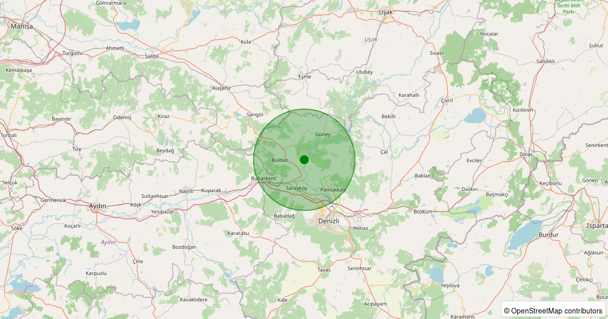 Son 7 gün içinde Buldan - Yenicekent noktasından 100 km yarıçap içerisinde meydana gelen diğer depremler:
