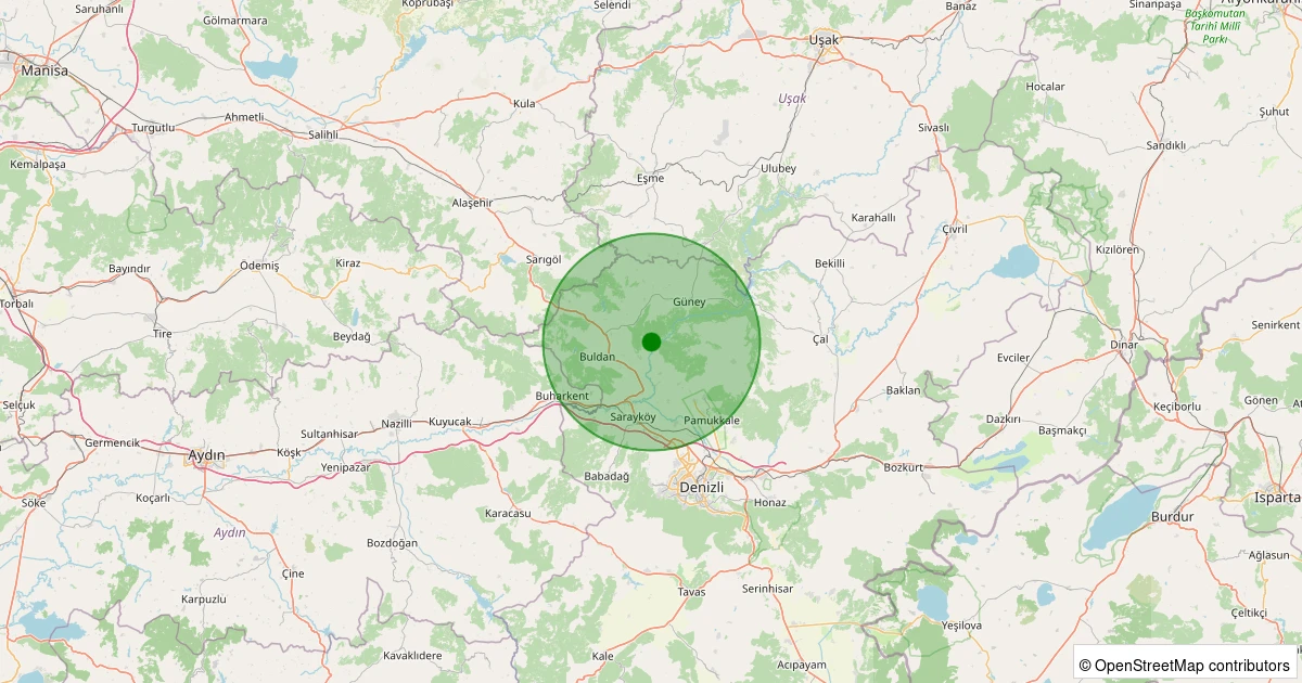 Son 7 gün içinde Buldan - Yenicekent noktasından 100 km yarıçap içerisinde meydana gelen diğer depremler:
